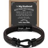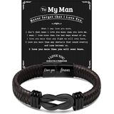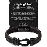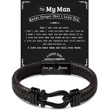 Combining the spirit of freedom with the essence of romantic sentiment, our men's leather bracelet features a classic nautical clasp design, adding a unique touch of fashion charm to your wrist. This bracelet is not only a symbol of masculinity and strength but also a perfect gift for expressing love due to its exquisite craftsmanship and meaningful sentiment. Whether it's for Valentine's Day, an anniversary, a birthday, or as a daily fashion accessory, this bracelet is an ideal choice for men. It not only showcases the wearer's fashion taste but also serves as a romantic expression of love commitment. Choosing our men's leather bracelet, you will possess an accessory that is both stylish and meaningful. It not only enhances your personal charm but also serves as a special way to convey love. Purchase this men's leather bracelet now, and let it become a token of your love or a fashionable highlight to your daily style. "Love you forever" is not just a promise but also an affection that can be worn on the wrist.