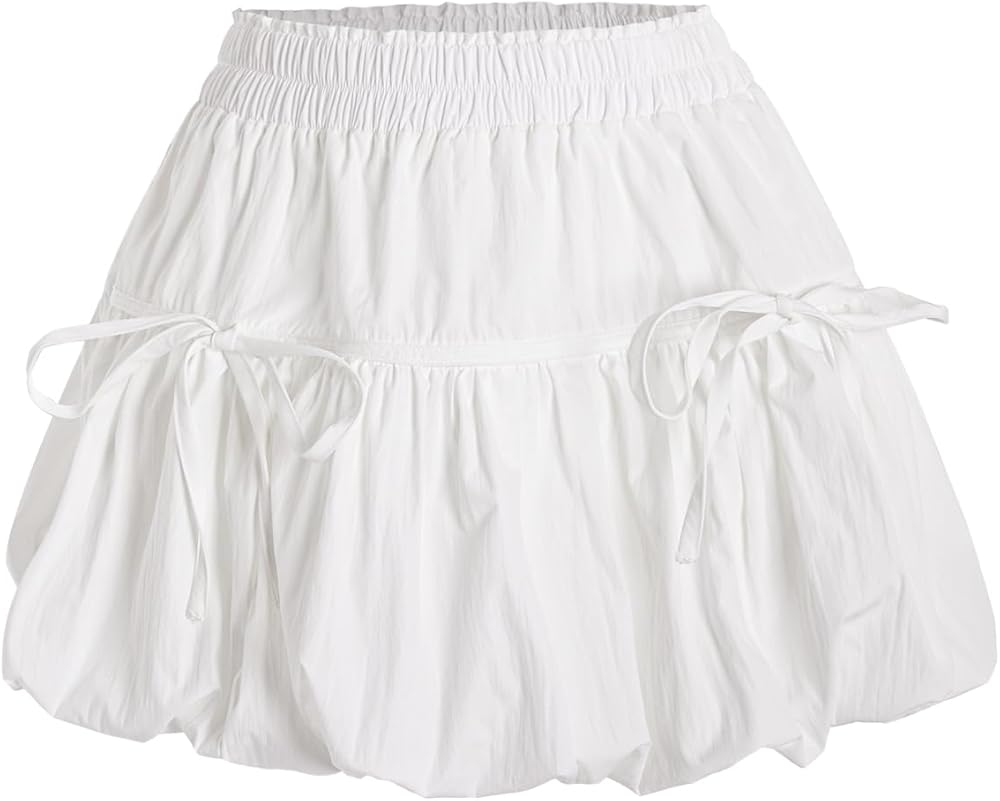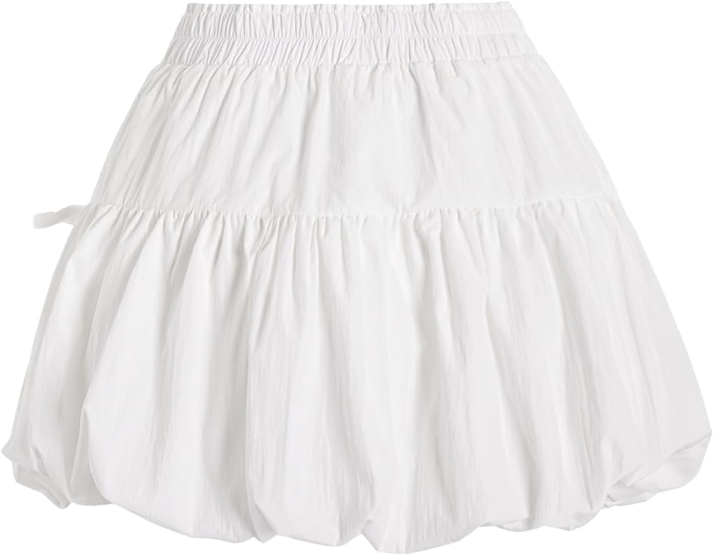 Verdusa Women's Bubble Skirt Ruffled Pleated Mini Skirt Elastic Waist Short Skater Skirts