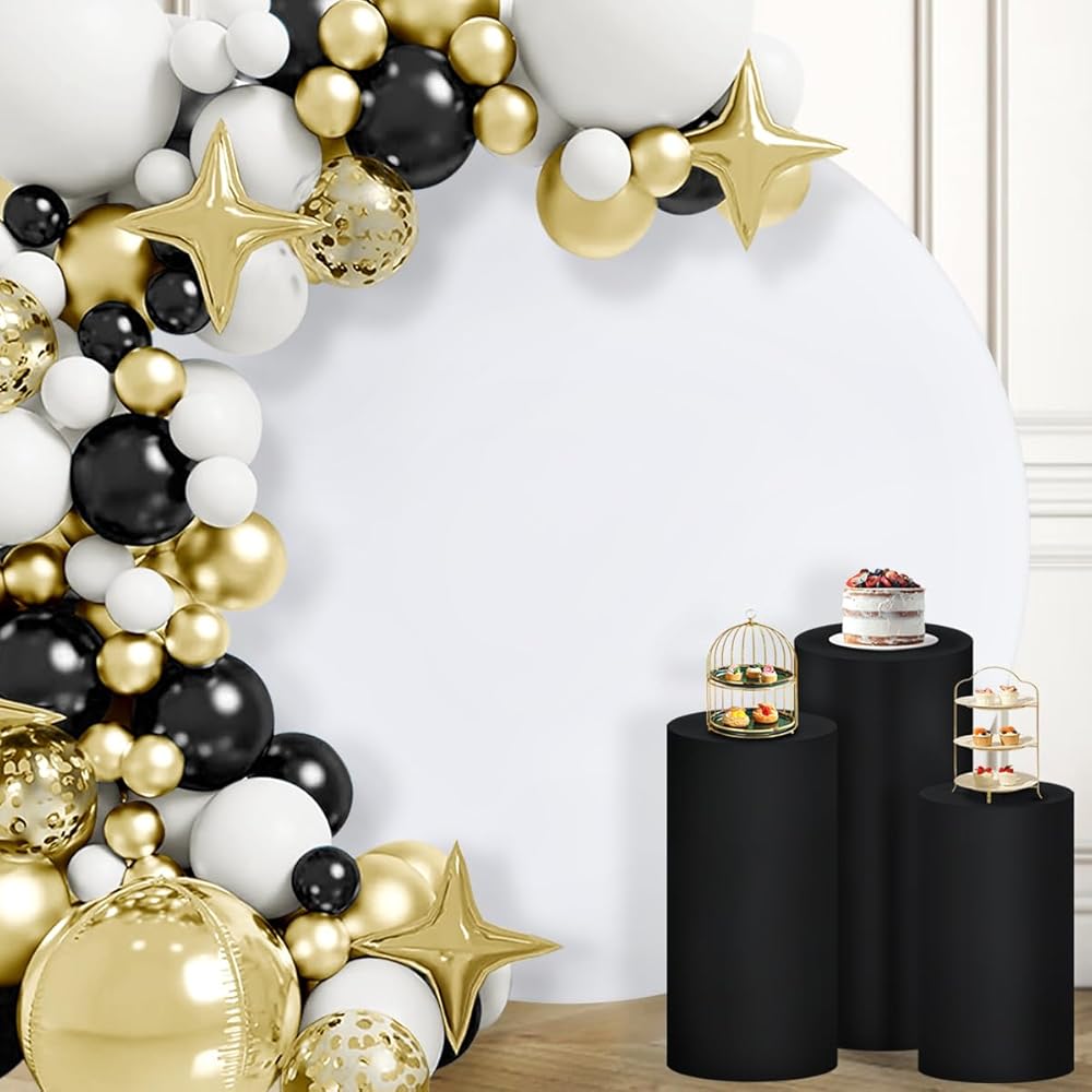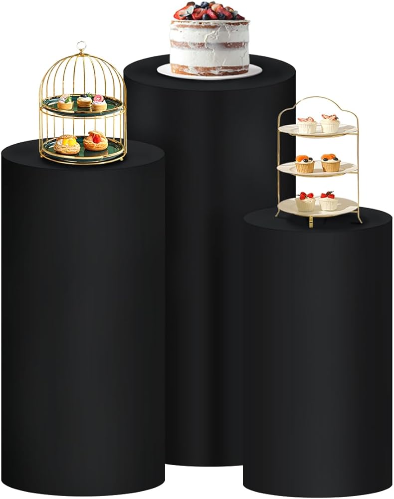 Socomi Cylinder Pedestal Stand Covers Spandex Flexible Display Box Stand Covers for Birthday Party Wedding Baby Shower Decoration- Only Stand Covers Included Set of 3 Black