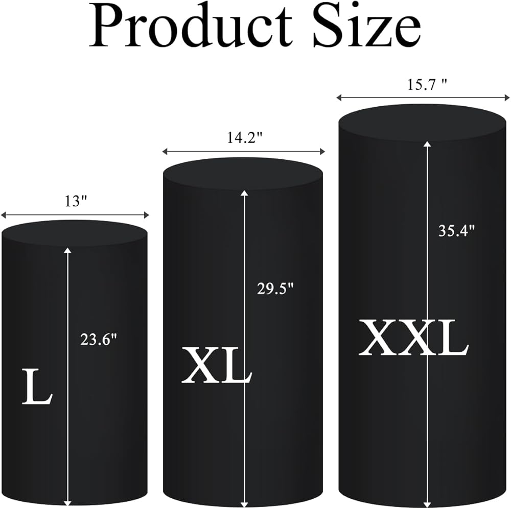 Size - 3 sizes of cylinder pedestal stand covers are included: L: 23.6"H x 13"D; XL: 29.5"H x 14.2"D; XXL: 35.4"H x 15.7 "D. Note: cylinder pedestal stand is NOT Included. Covers ONLY.