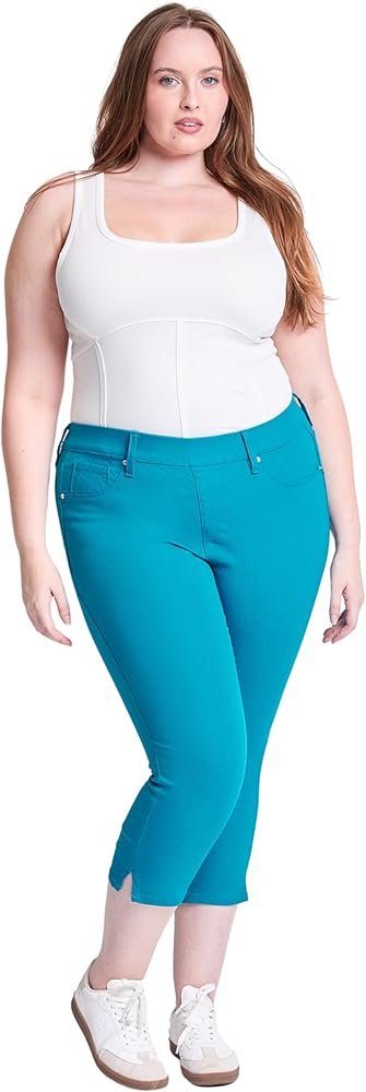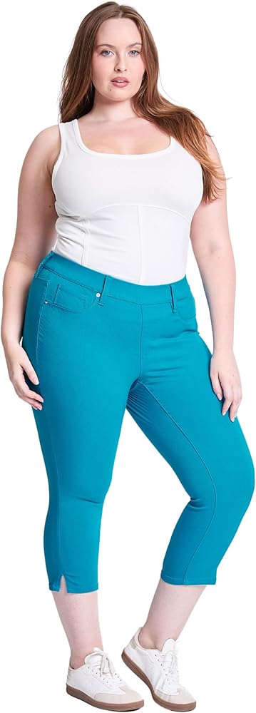 Women's Hyperstretch Pull On Capri combines style and comfort like never before. Made with our innovative Hyperstretch fabric, these capris move with you, providing a flattering fit that hugs your curves in all the right places. The pull-on design makes them a breeze to wear—just slip them on and go! With a cropped length, these capris are perfect for everything from running errands to weekend brunches. The Hyperstretch material ensures you'll feel comfortable all day long. Pair them with a casual tee or dress them up with a flowy blouse for a versatile look that's ready for anything. Product Details: - High-Rise - Pull-on - Cropped Size & Fit (based on size 2X): - Inseam: 23" - Rise: 11" - Leg Opening: 15 1/2" Machine wash cold. 77% Rayon, 21% Nylon, 2% Spandex