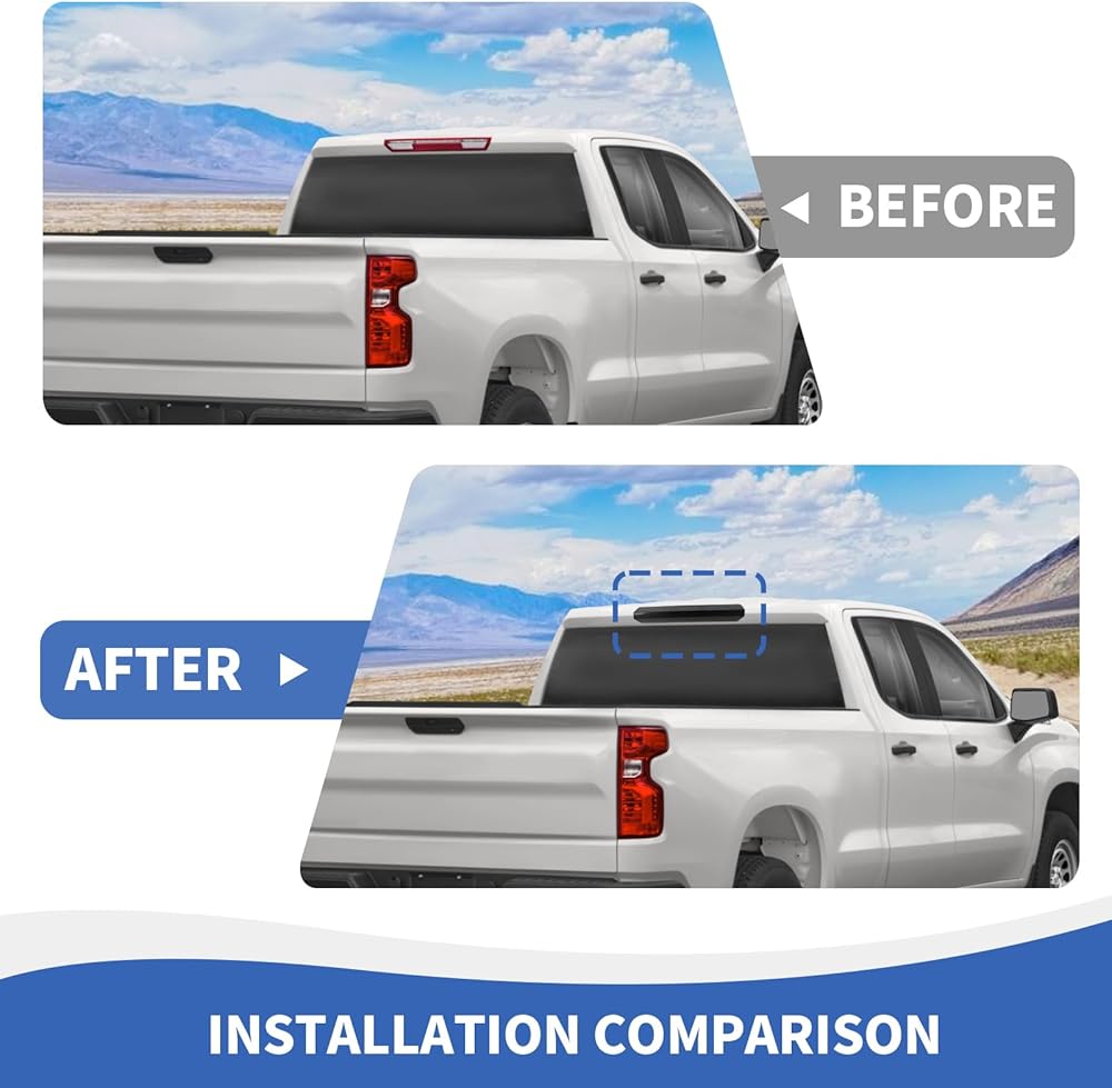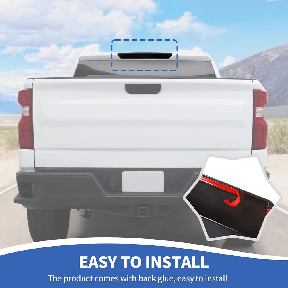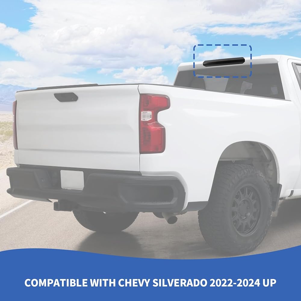 FITMENT--Smoked high-mounted brake light covers compatible with Chevy Silverado 2022 2023 2024 up. (NOTE: Please check the second picture to confirm your brake light design.)