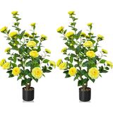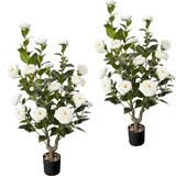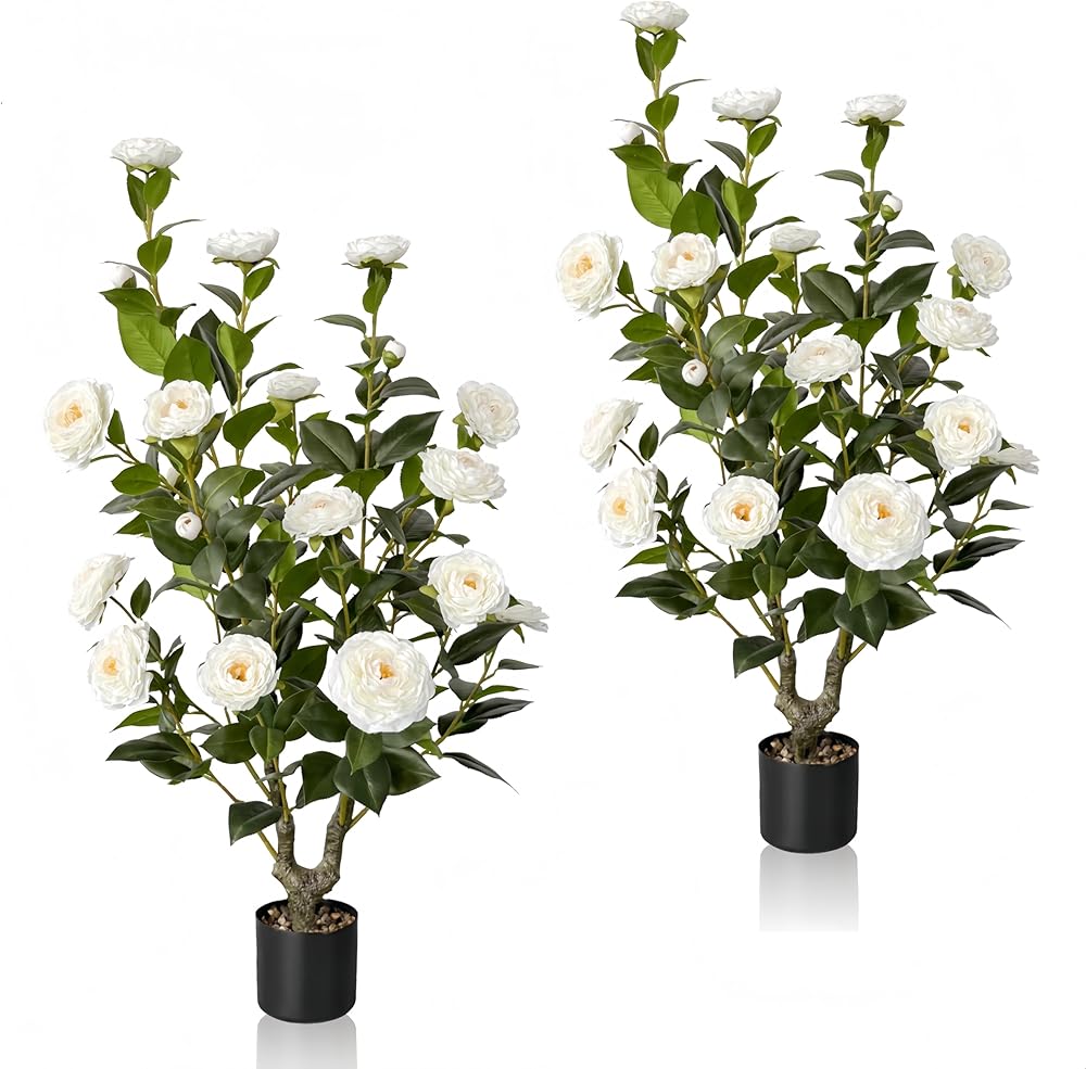 2pcs Artificial Camellia Tree 38 inch, Faux Plants Outdoor Artificial Flowers, White Tree with Planter Pot & 24 Flowers, for Home Indoor or Outdoor Decor