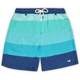 Your little one will want to watch the sunset in the Youth Harbor Horizon Swim Trunk! The bright stripe pattern gives the illusion of the sun slowly falling below the coastline, while the durable polyester fabric dries quickly to keep your child comfortable all day. Grommet vented and mesh-lined, these bottoms won't puff up when getting in and out of the water. The corded drawstring keeps them in place while the contrasting velcro back pockets add an extra pop of color.