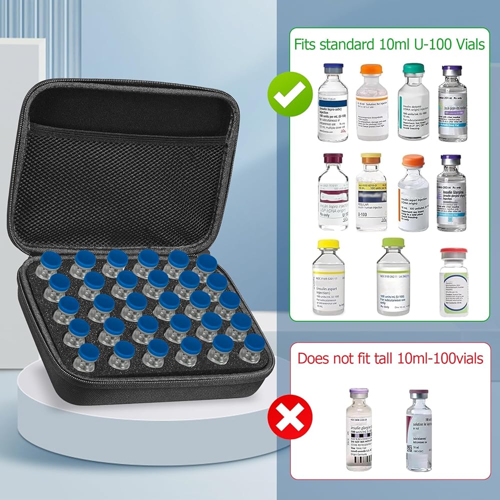 30-Slot Insulin Travel Case,Vial Storage Case with Mesh Pocket for Diabetic Accessories,Compact, Durable Insulin Vial Cooler for Travel and Home Organization,Perfect for 3ml Injection Vials