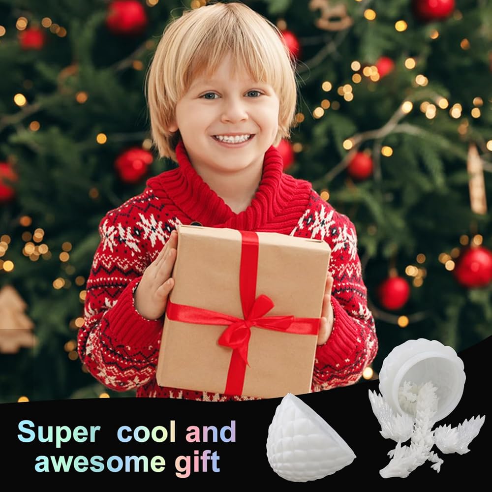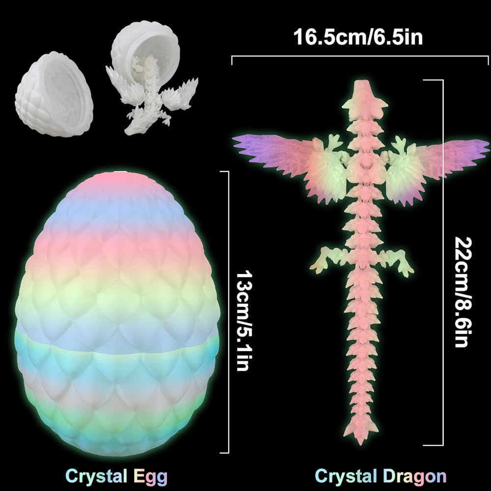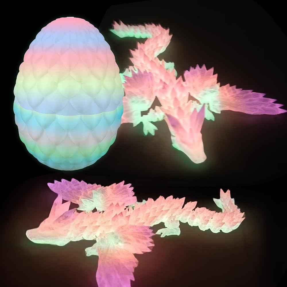3D Printed Dragon Egg, 3D Printed Dragon with Wings Glow in The Dark, Toys Cool Dino Fidget Toy Animals Dinosaur Eggs Stocking Stuffers, Home Office Decor, Easter Basket Stuffers
