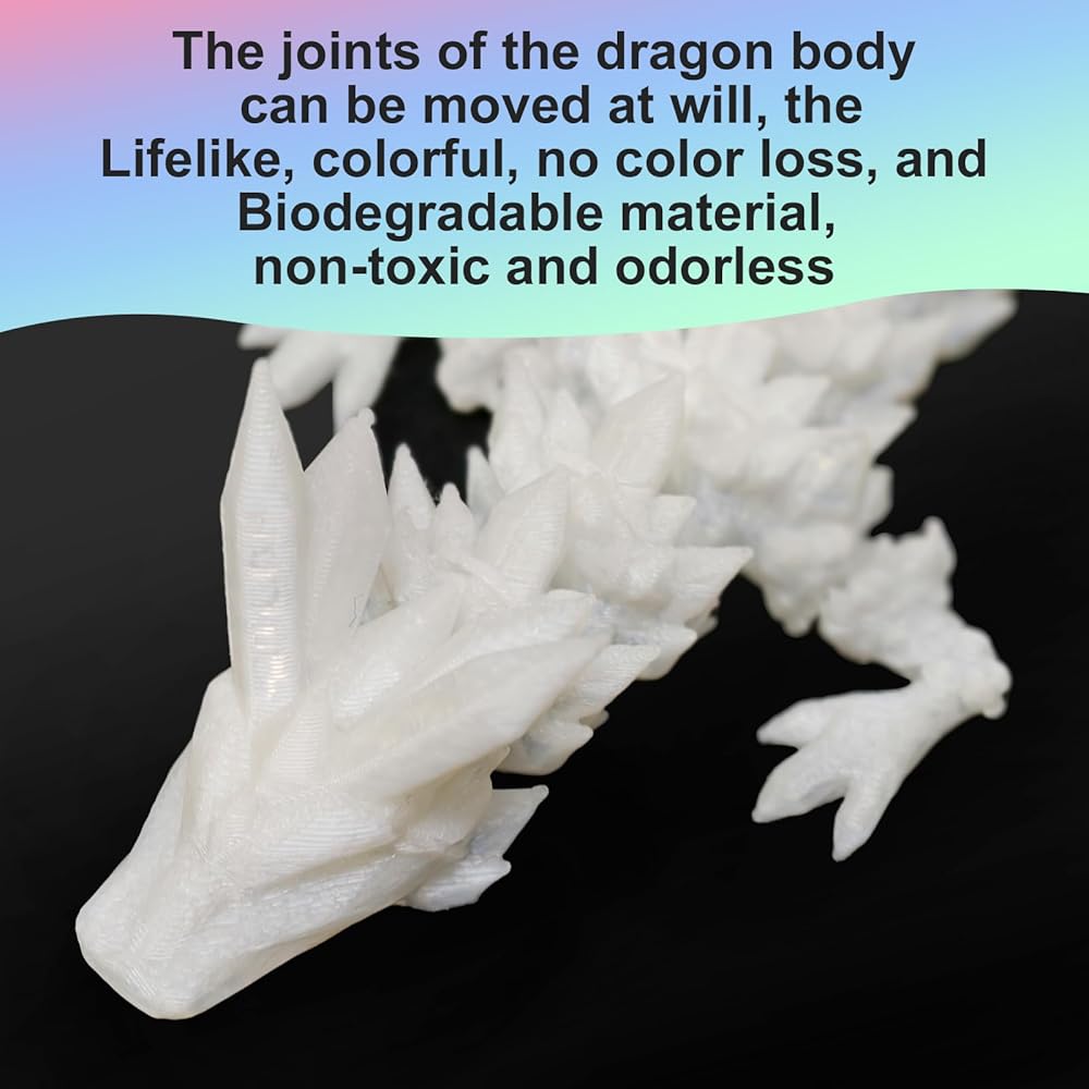 【Latest 3D Printing Technology】 It uses the latest 3d printing technology, using high-quality PLA materials. The 3D printed dragon's joints are movable, making the whole more interesting. Under the darkness of night can match different places, such as office desk, bookshelf, bedside table, fish tanks, or even a cool car