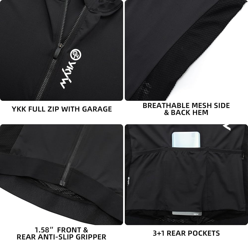 Easy Wear & 1.58" Anti-slip Hems:YKK full zip bike jersey women provides easy on/off and additional ventilation.Front and rear 1.58" gripper to hold jersey in-place in aggressive riding position.A zip garage at the neck prevents contact with the skin.