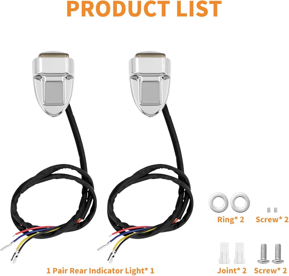 - 【Package Included】: 1 pair of LED turn signal indicators lights + wiring harness