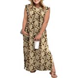 Design:This plus size summer dresses has a triangle patch at the underarm for modesty without sleeves. The side slit hem accentuates your curves, making you look charming. Convenient side pockets for hands-free movement.