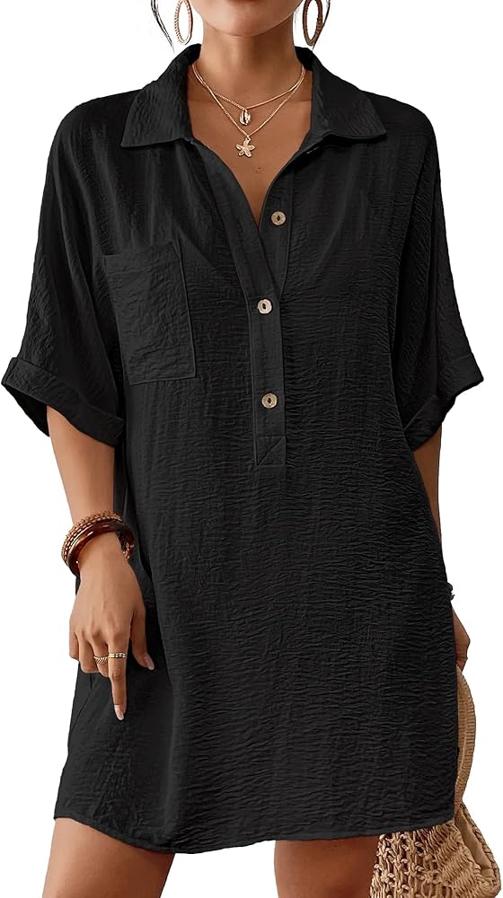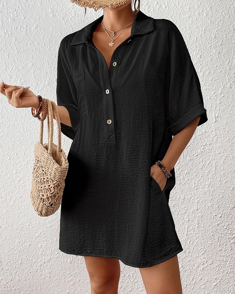 Features: With lapel collar, front buttons, short sleeves, two side pockets, this bathing suit cover up for women is the perfect blend of fashion and function for outings and vacations