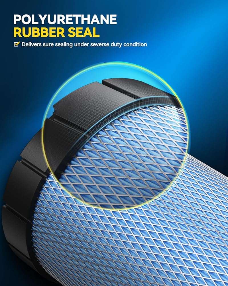 Polyurethane Rubber Seal: The air filter is equipped with high-quality polyurethane rubber sealing, featuring permanent resilience, and providing reliable sealing performance under severe duty conditions