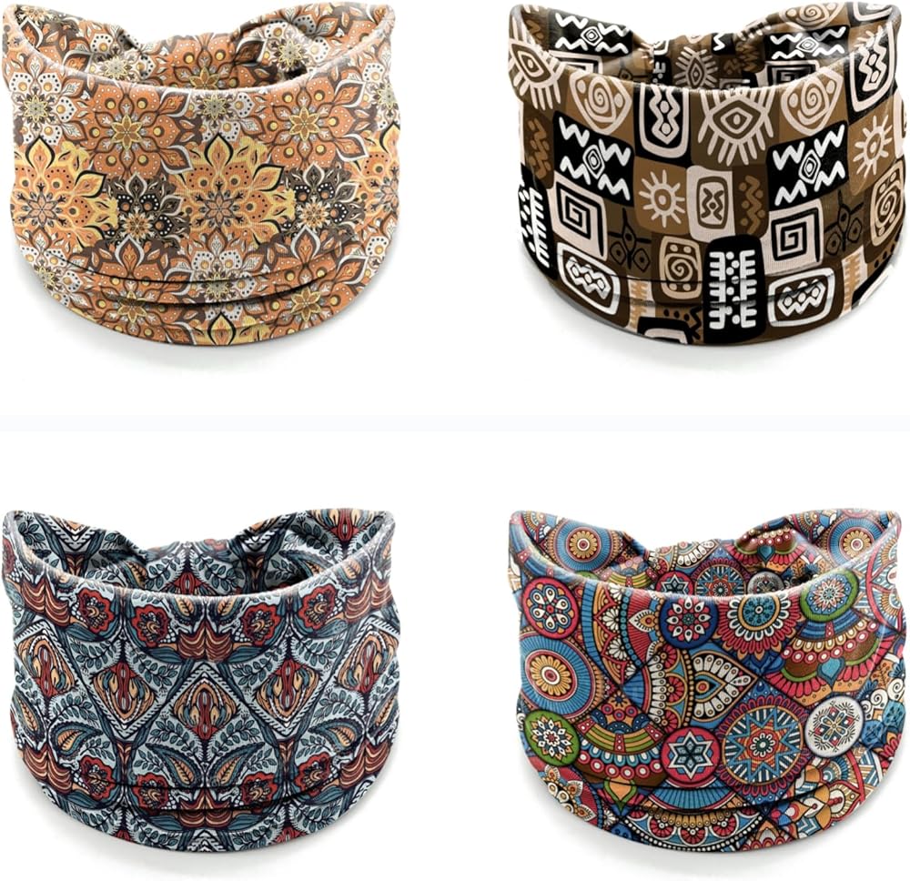4 Pack July 4th Patriotic Headbands for Women - American Flag Heart Star Print Wide Bandana, Breathable Stretchy Non-Slip Hair Accessories for Yoga, Running, Party Celebrations