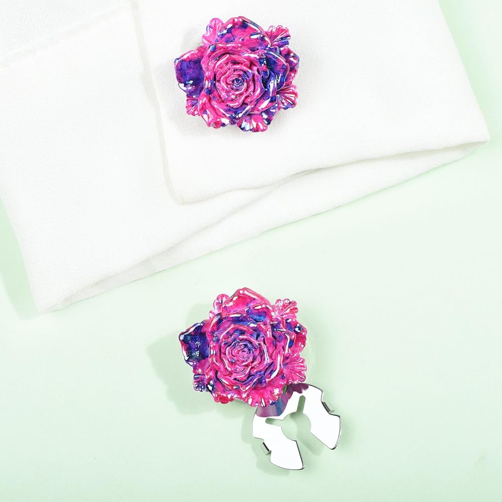 Transform ordinary shirt cuffs into elegant fashion statements with these exquisite rose button covers. Each piece in this 2-piece set features a beautifully detailed rose design with sophisticated gold flecks that catch the light, adding a touch of luxury to any formal attire. The covers are perfect for elevating the look of wedding tuxedos, formal business shirts, or adding a decorative touch to skirt buttons. The dimensional flower design sits gracefully on any button, while the secure clasping mechanism ensures they stay firmly in place throughout your event. These versatile accessories can instantly upgrade your wardrobe, making them an essential addition to any formal wear collection. Their rich navy blue color complements a wide range of fabric colors and patterns, while the metallic accents add just the right amount of sparkle for special occasions.