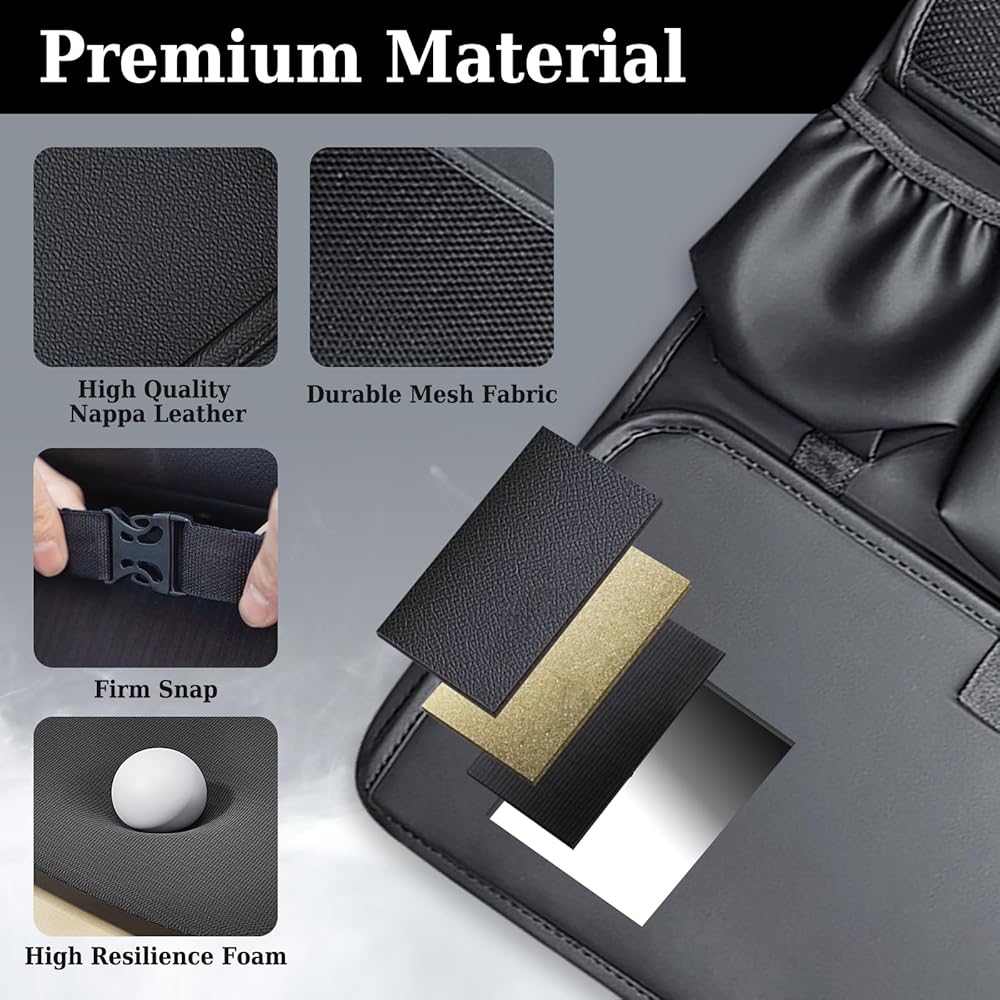 [Premium Nappa Leather] Crafted from high-end Nappa leather, this backseat car organizer exudes elegance while offering superior durability. The waterproof and stain-resistant material repels spills, grease, and scuffs, making it easy to clean. Perfect as a car seat organizer that combines luxury with practicality for any vehicle.