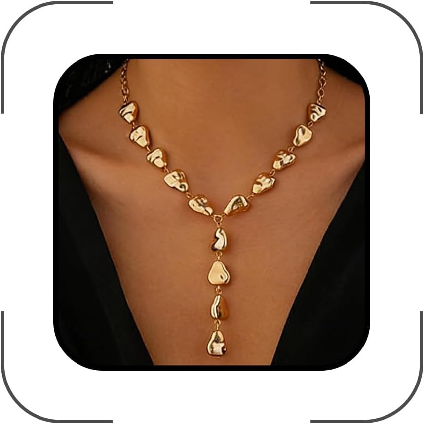 [Chunky Gold Teardrop Y Necklace]Catch the essence of grace with our chunky gold teardrop y necklace, a stunning addition to your jewelry. Featuring irregular, teardrop-shaped beads, this trendy pendant necklace offers a touch of vintage charm and modern flair. The adjustable length allows you to customize the fit, making it ideal for layering or wearing solo