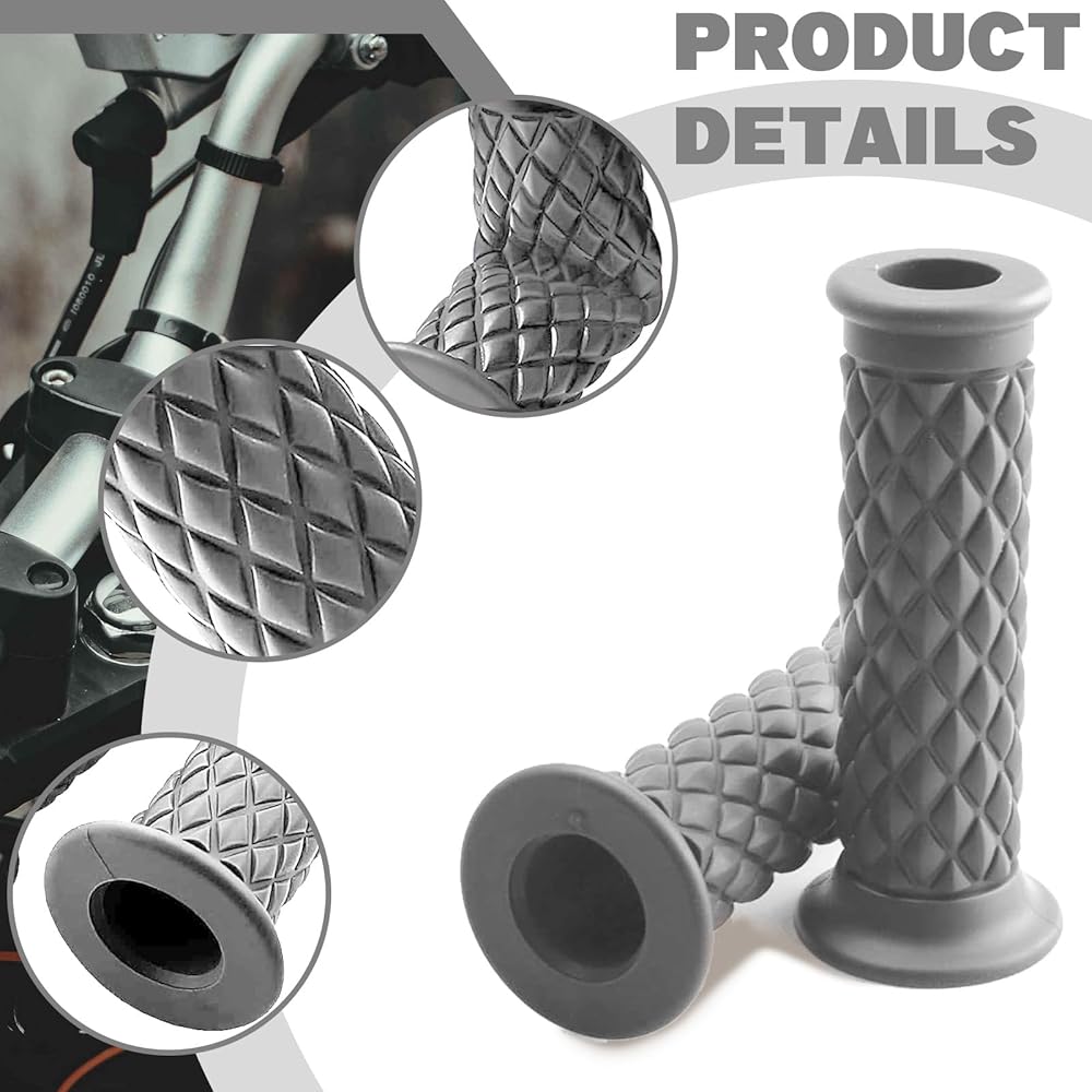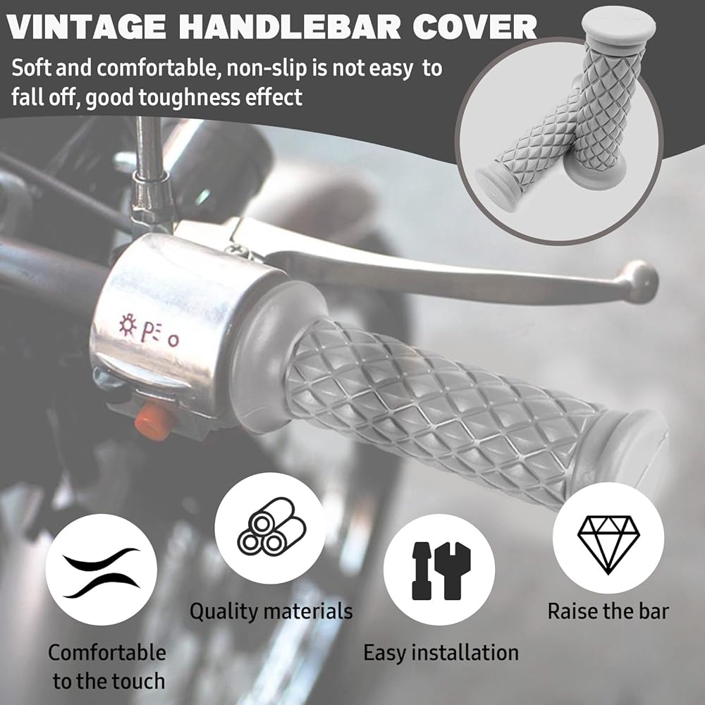 2 PCS Motorcycle Hand Grips, Non Slip Rubber Bar for 7/8" 22mm/24mm Handles, Vintage Motorbike Thruster Grip with Open End, Universal for Motocross Scooter Dirt Bike (Gray)