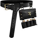 Exquisite Design: Unique medieval alchemist belt pouch with traditional vintage alloy buckle, external removable alchemy flask storage compartment for up to 4 medicine bottle. Suitable for use with Alchemist costumes and a variety of medieval styles, this belt pouch allows you to LARP and Ren Faire events in stand out