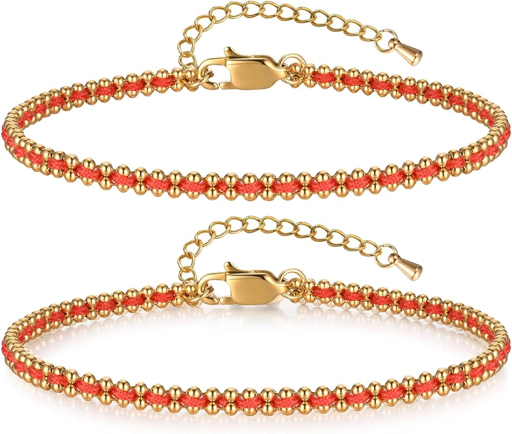 Gold Bracelet Material:These gold chain bracelets for women are made of 14K gold plated stainless steel and red rope, ensuring exceptional durability and a stunning, long-lasting shine,hypoallergenic,no fade and rust, lead and nickel free