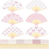 Roowest 36 Pcs Pink Bow Folding Hand Fan Bulk Coquette Bow Party Favors Folding Handheld Fan for Women Birthday Bridal Bachelorette Shower Wedding Party Supplies
