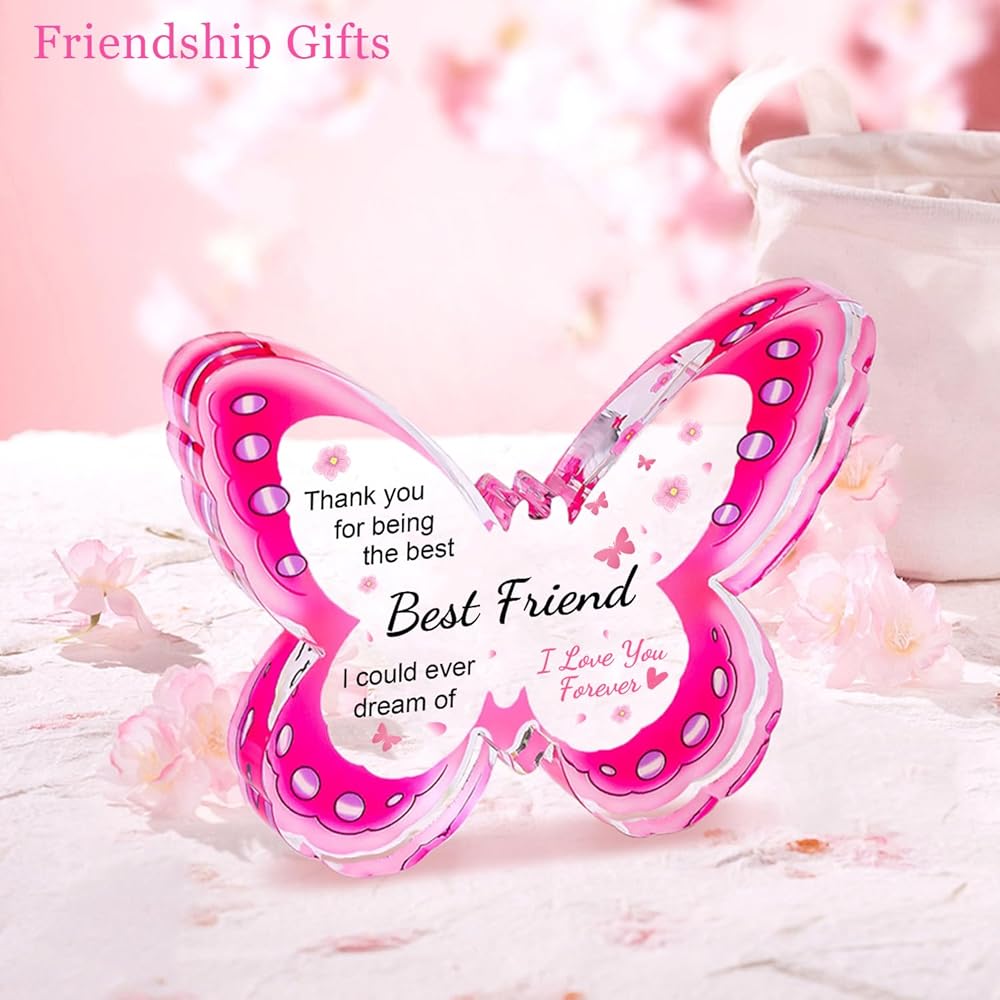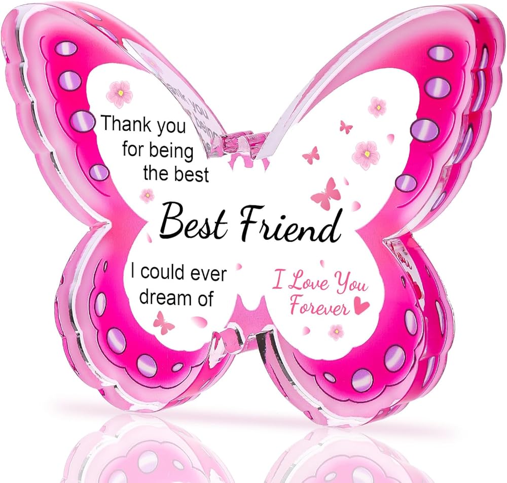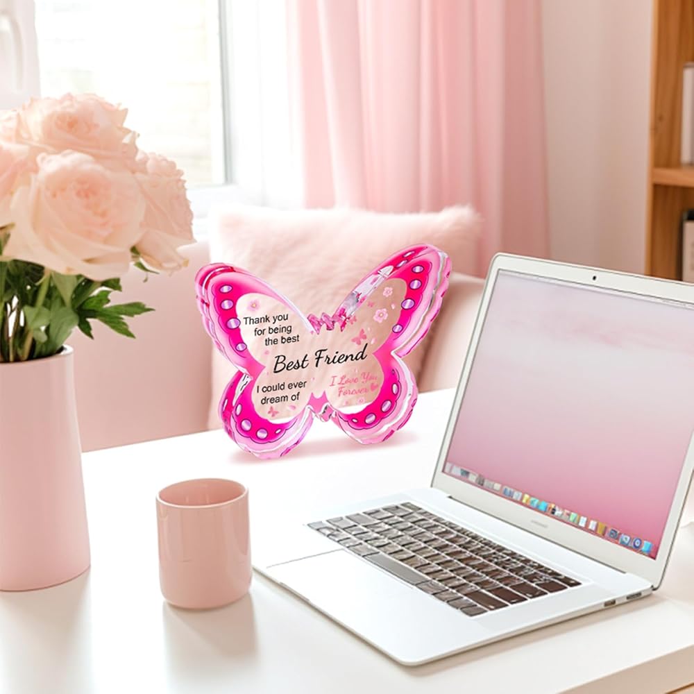 Best Friend Friendship Birthday Gifts for Women, Mothers Day Gifts for Friends, Best Friend Mothers Day Gifts, Unique Best Bestie Special Decorations - Acrylic Butterfly Plaque 4.3x3.3 inch