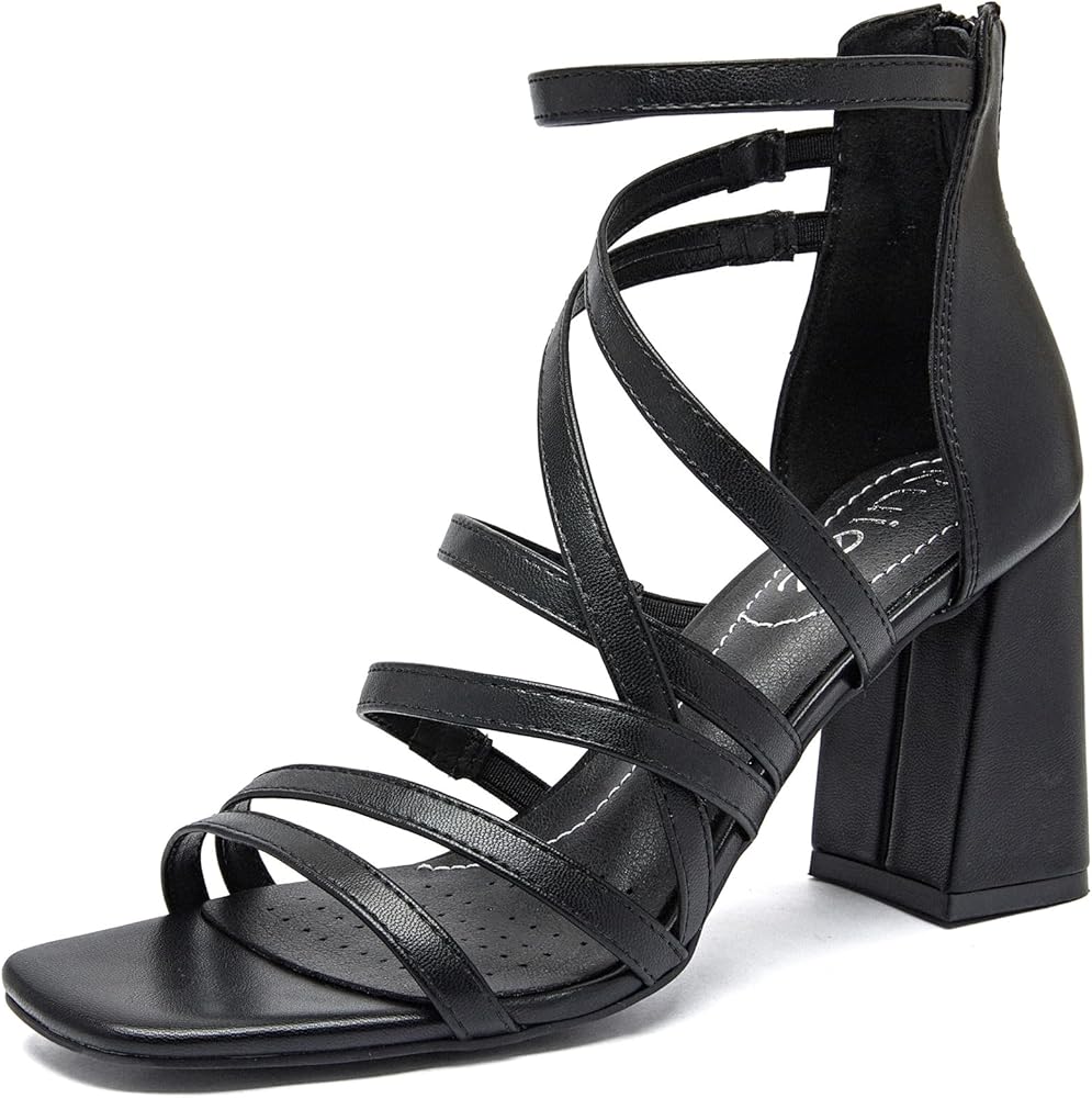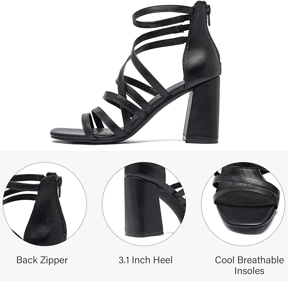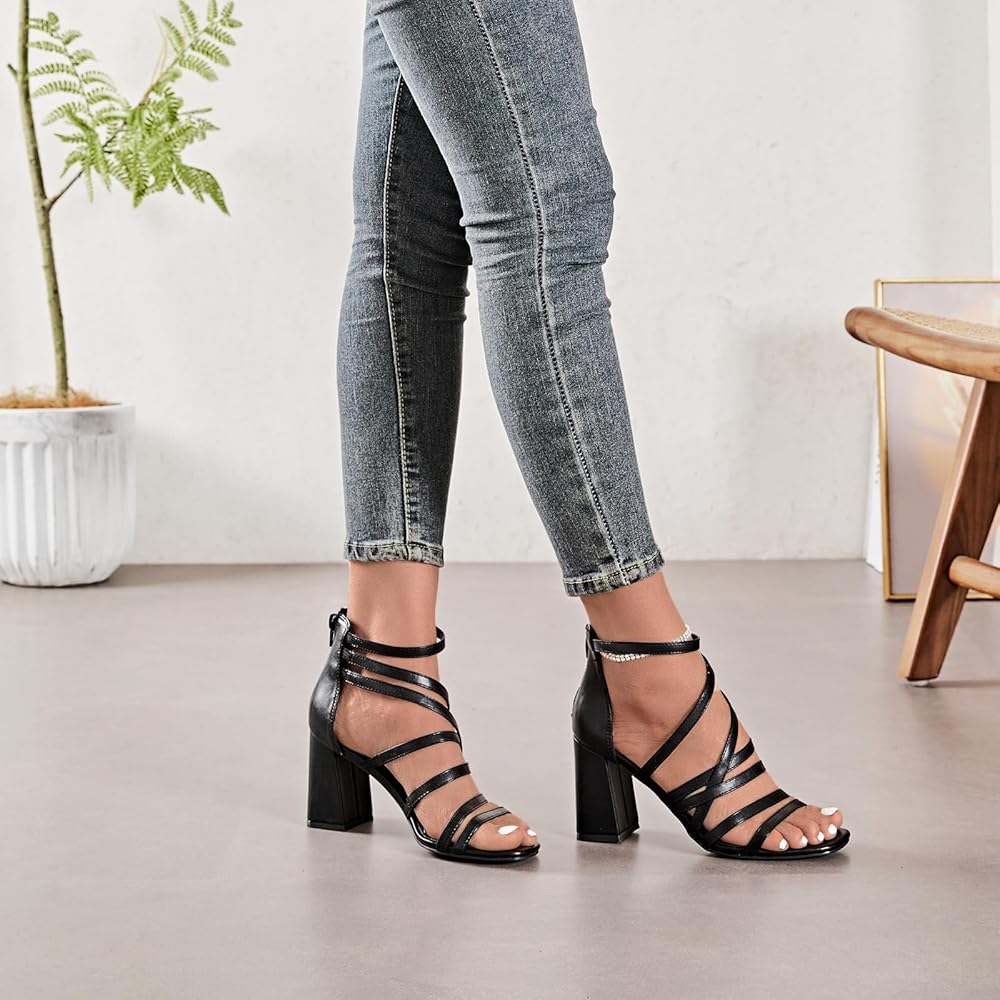 Stylish Design: These women's heeled sandals feature a trendy strappy design with a stacked heel, ideal for regular foot sizes.