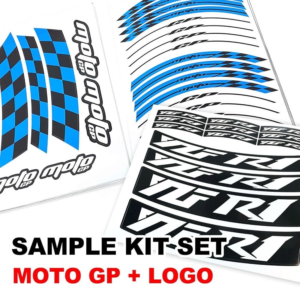 Kit Set includes 16 pieces GP Stripes & 4 pieces Decals for front + rear rim & 13 pieces Bike Model Stickers