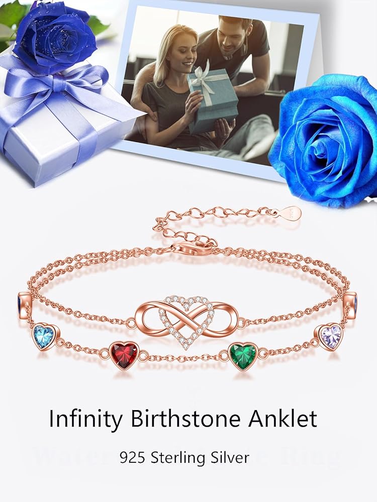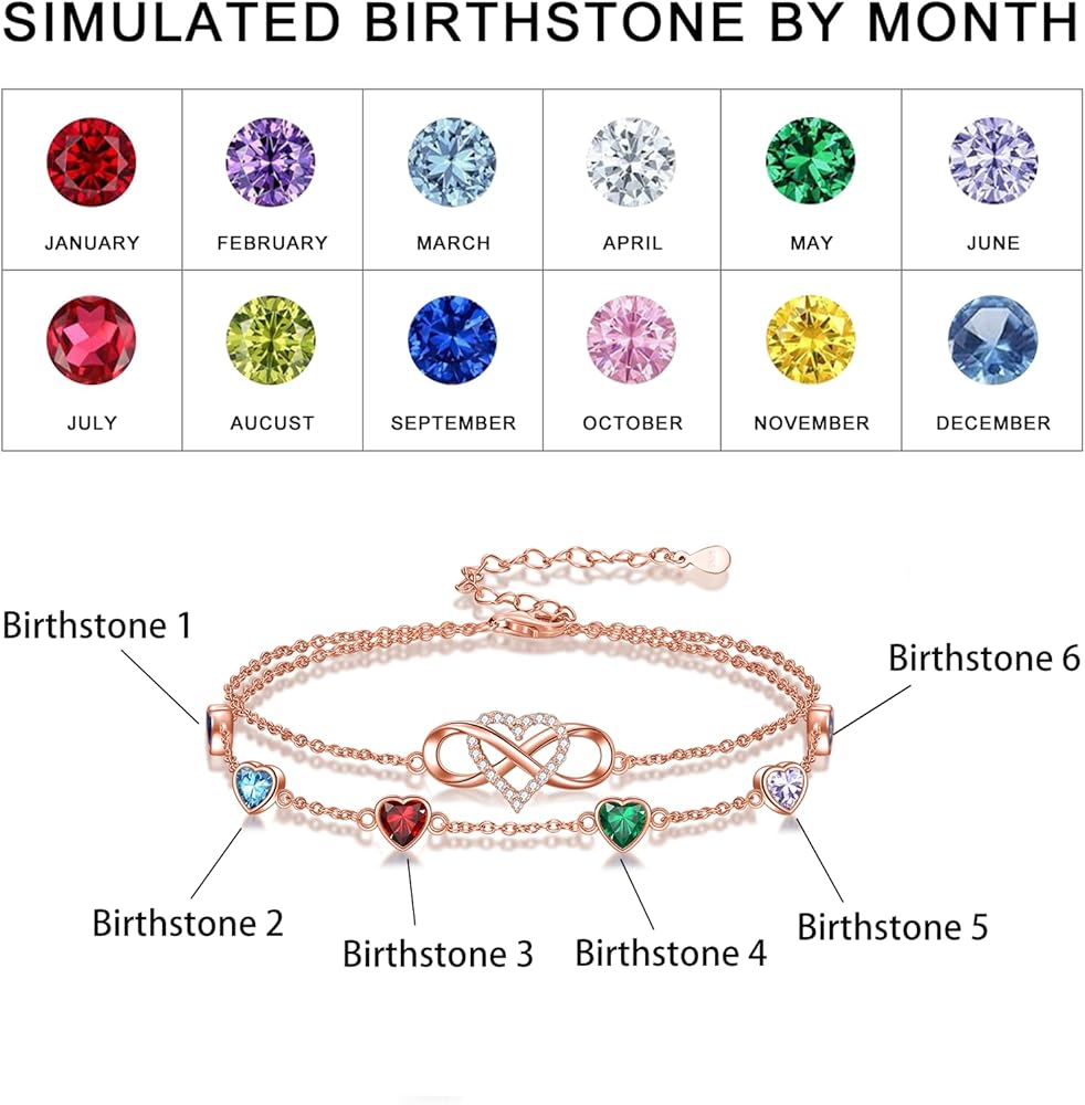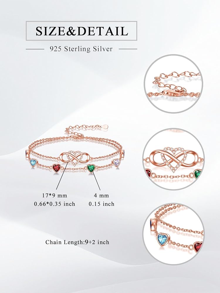 【July Birthstone Bracelets】This heart bracelet with infinity heart design that symbolize love for each other. Bracelet is embellished with 6 heart birthstone crystals. 12 different colors of gemstones, corresponding to the birthstone of each month. When she wears this birthstone bracelets, she will feel your full love.