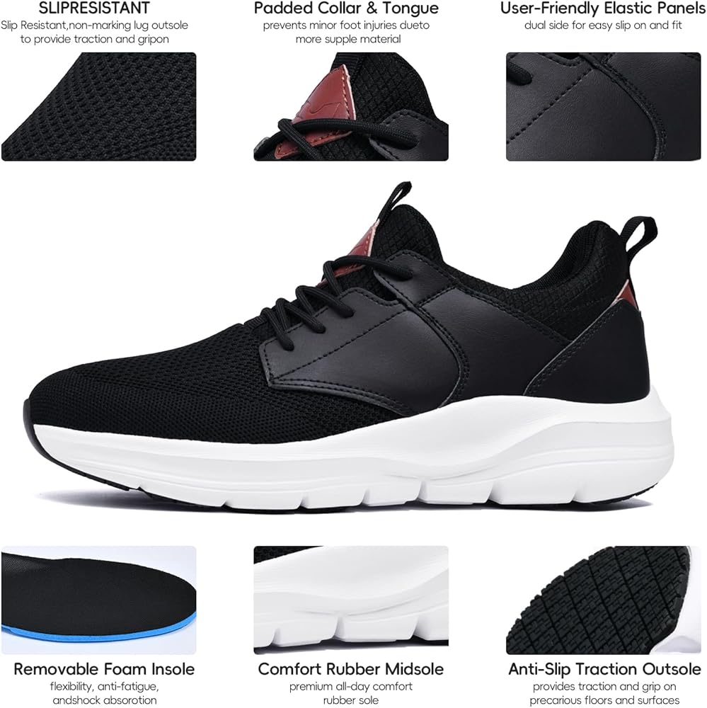 EASY WEAR & WATERPROOF SHOES: Our sneakers keeps your feet dry and comfortable in any weather. Lightweight mesh for long-term standing workers.Water resistant upper provides protection from light moisture. Not easy to get wet in rainy or snowy days.