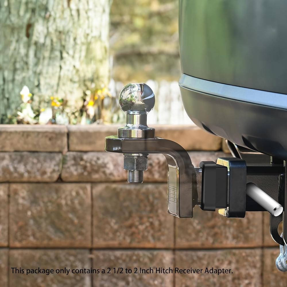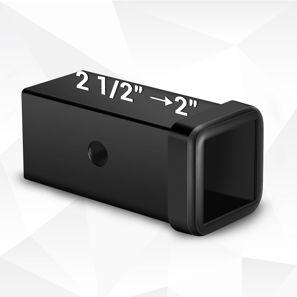 [2 1/2 to 2 Inch Hitch Receiver Adapter] This Trailer Hitch Adapter allows for the conversion of a 2.5-inch hitch receiver to a 2-inch one. Due to its interface design, there is no concern of it sliding too far into the hook tube.
