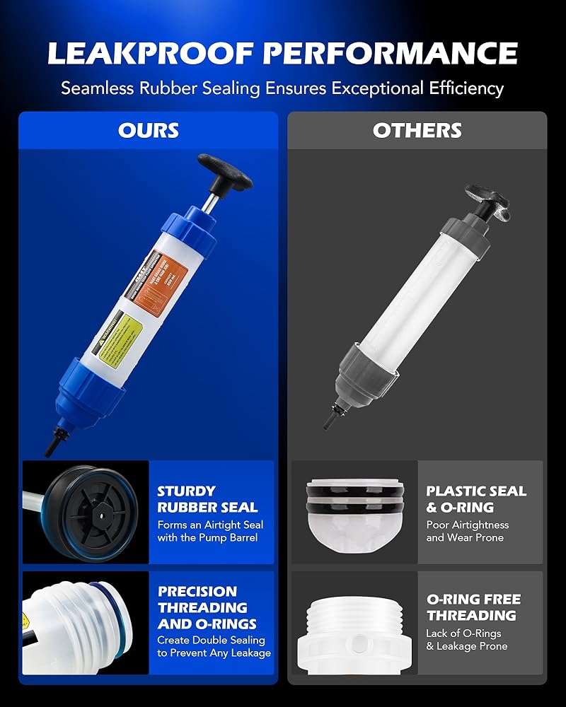 Double-Sealed Security: This oil extractor pump features a dual rubber ring design that forms an airtight seal, while the precision threading at the end prevents any leakage.