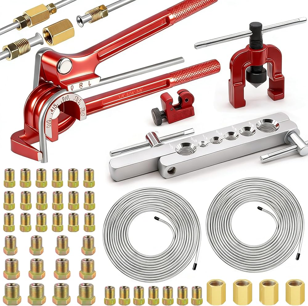【Brake Flaring Tools】Suitable tubing sizes are 3/16", 1/4", 5/16", 3/8", 7/16", 1/2", 5/8"(6mm,8mm,10mm,12mm,14mm,15mm).Flaring tools is used for flaring the ends of brake line tubing,copper tubing, aluminum tubing and so on.