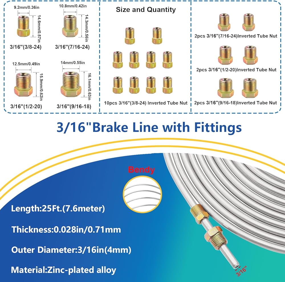 【1/4" Brake Line Tubing】Copper-plated material, with a unique surface treatment, will be more corrosion-resistant than standard steel pipes. The brake line is very flexible and easy to install
