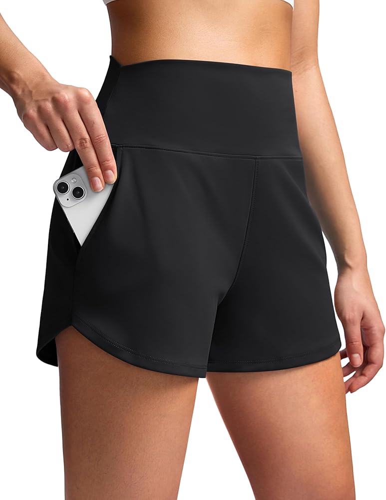 4" HIGH WAISTED- The 4 inch thick elastic waistband, which not only provides tummy control, but helps keep the running shorts in place during even the most intense workouts.