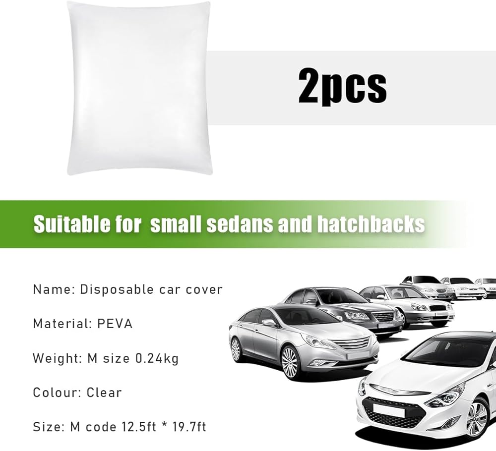 2 PCS Disposable Car Cover, 12.5' × 19.7' Waterproof Dustproof Clear Car Cover with Elastic Band, Full Exterior Plastic Rain Protector for Mini Van Sedan, Car Accessories