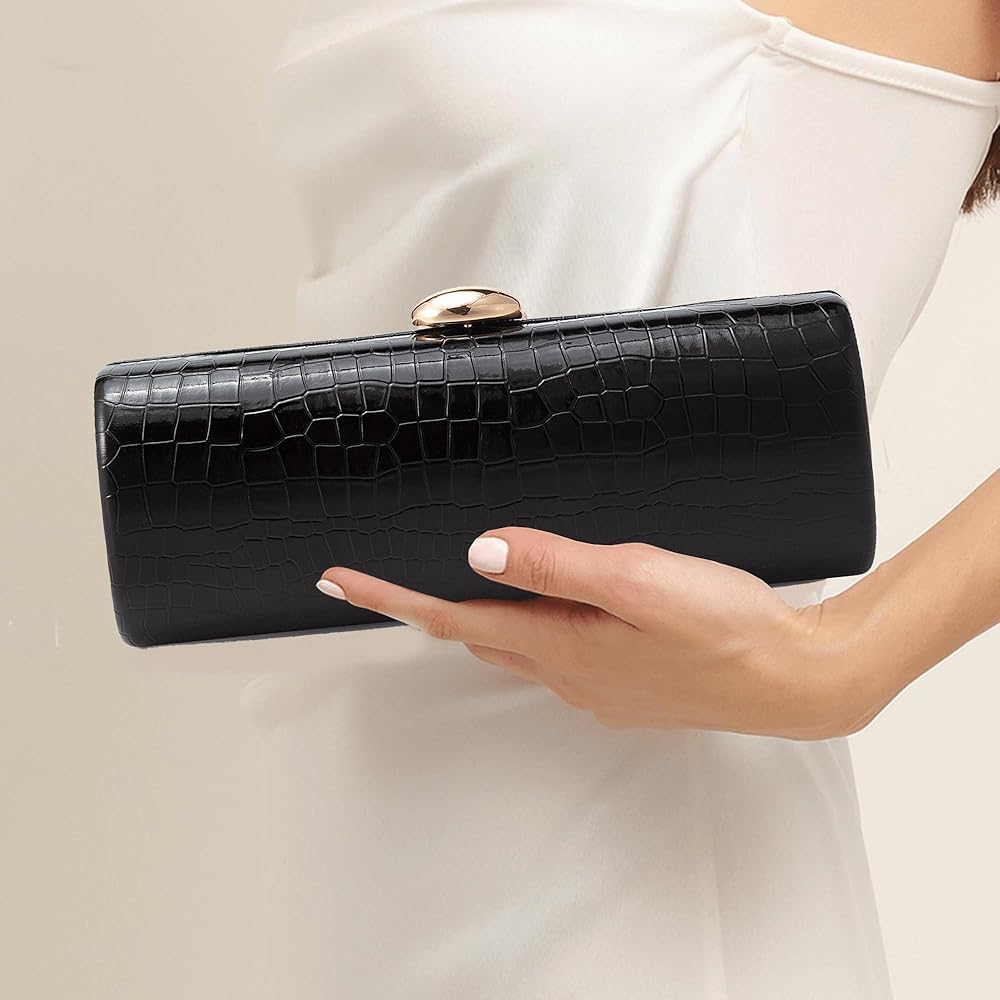 Structure: With only 1 large main compartment, this crocodile embossed evening bag features a magnetic snap closure for easy opening and closing. The metal chain strap and metal lock clasp complement the crocodile pattern, adding a unique touch.