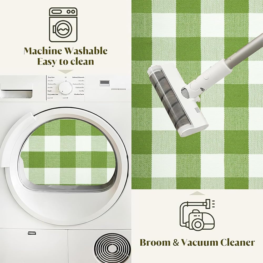 【Material and Craftsmanship】: Buffalo plaid rug is made of hand-woven cotton material, which makes the carpet not only soft and comfortable, but also has a certain elasticity, thicker, durable and not easy to fade, adding a fashionable and lasting atmosphere to any room.