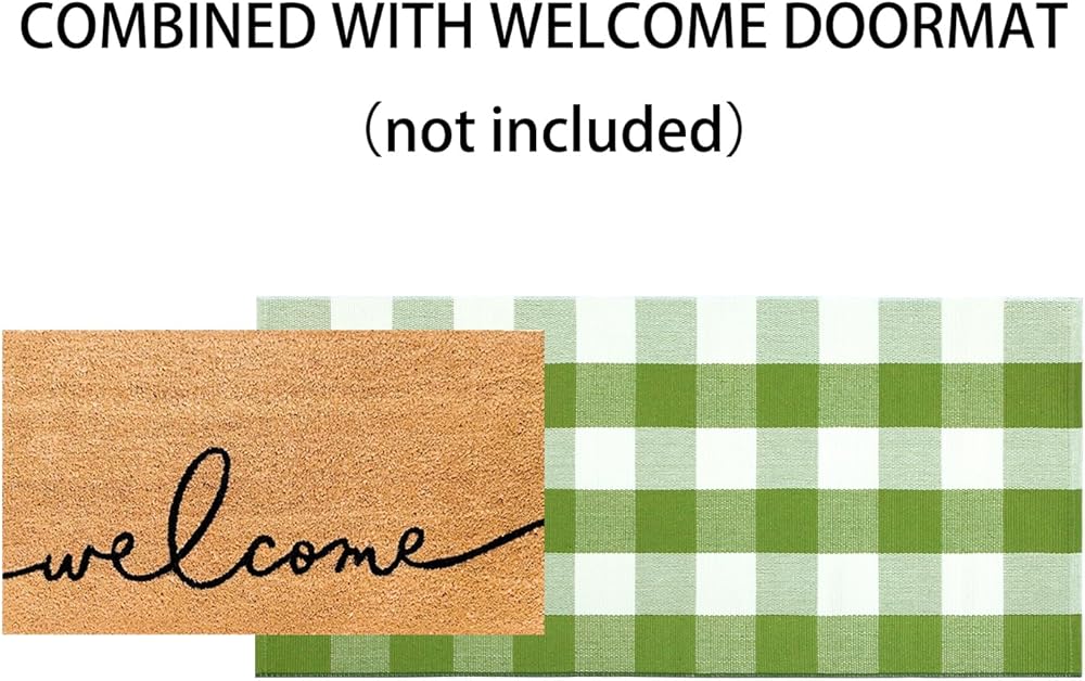 Green and White Front Porch Rug 2'X4.3'Buffalo Plaid Checked Outdoor Rug Cotton Woven Washable Layering Door Mat for Welcome Mat Entryway Bedroom Living Room