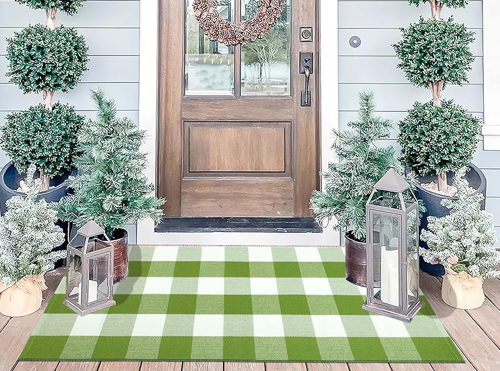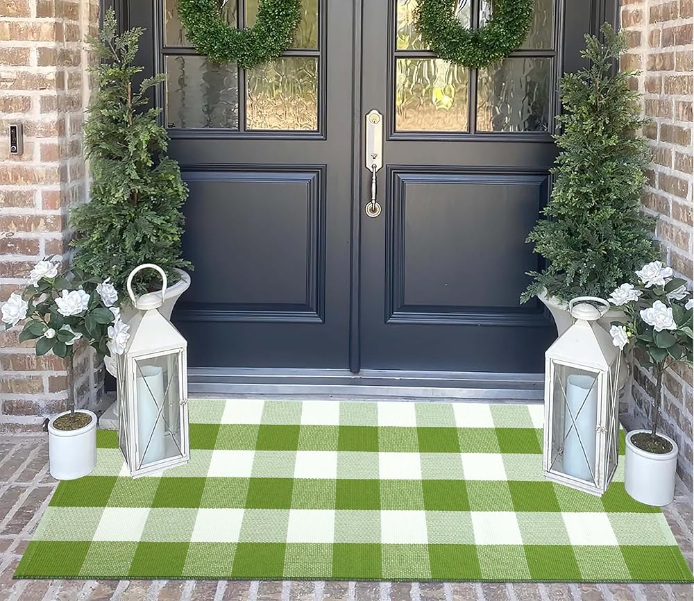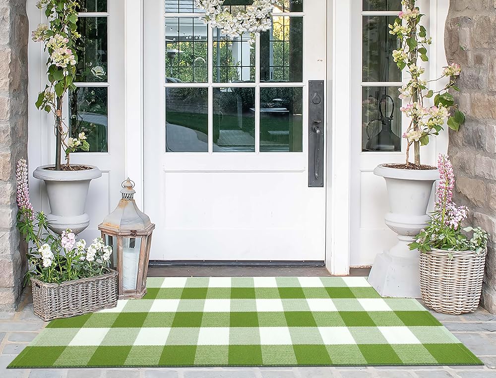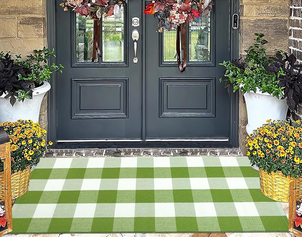【Multi-Purpose】: The outdoor plaid rug can be used as a front door mat, bathroom rug, laundry room rug, porch mat, welcome mat, kitchen rug, apartment rug, area rug, entry rug, sofa cushion, etc. suitable for a variety of place, put it on your front porch, combine a HELLO/WELCOME doormat on it, bring the most fashionable farmhouse decoration to your front porch.