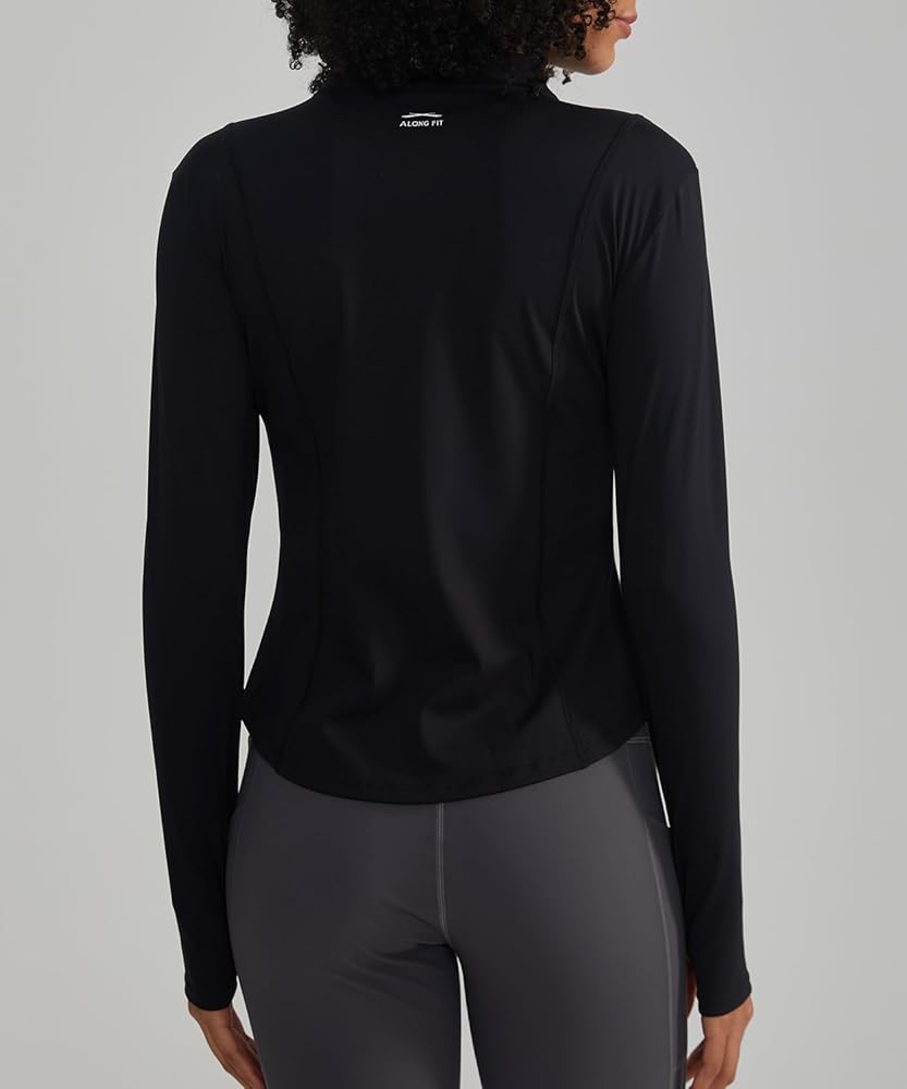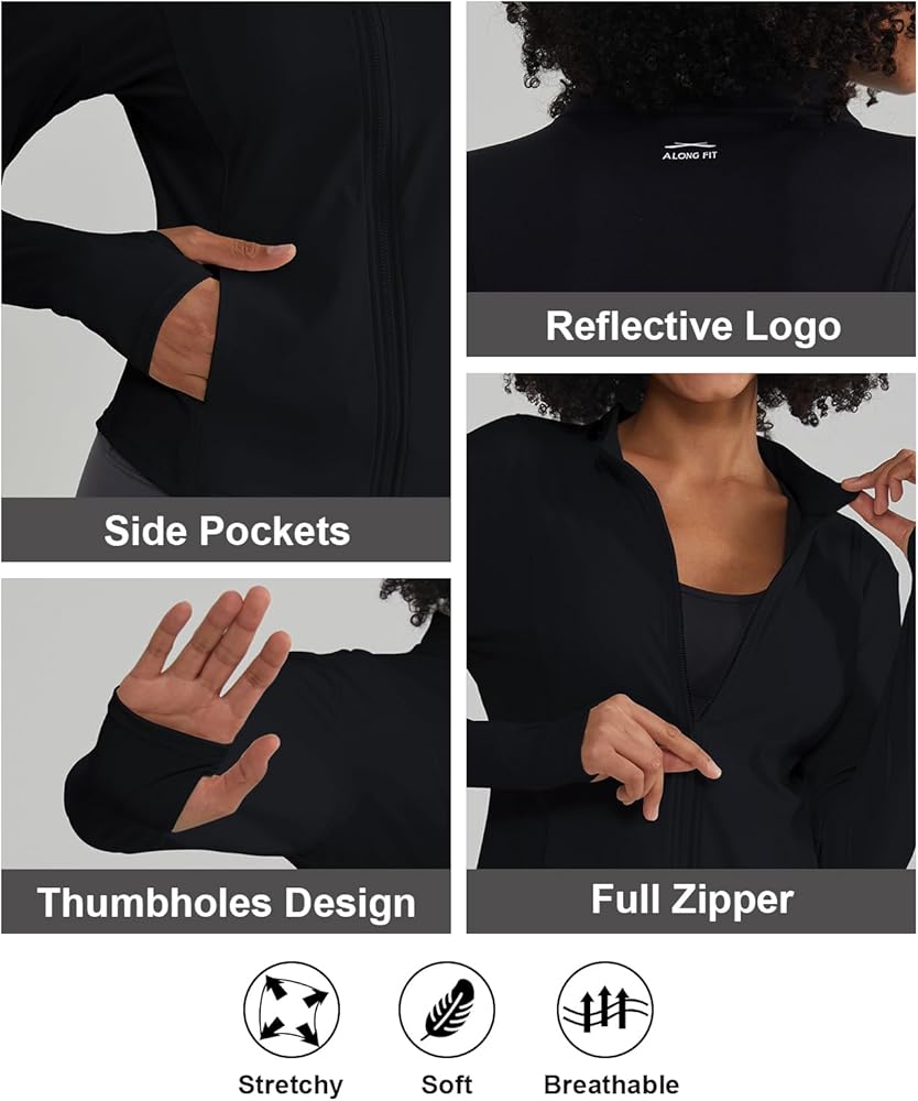 Soft and Breathable: Made from moisture-wicking, stretchy fabric, ALONG FIT athletic jacket for women provides stretch and comfort during workouts and daily wear.