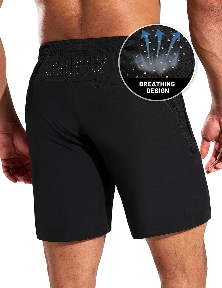 Athletic Fit: Featuring stylish back breathable holes and side panels made of micro air mesh for enhanced airflow, these running shorts ensure maximum breathability. An elastic waistband with an adjustable drawstring offers a secure, customized fit