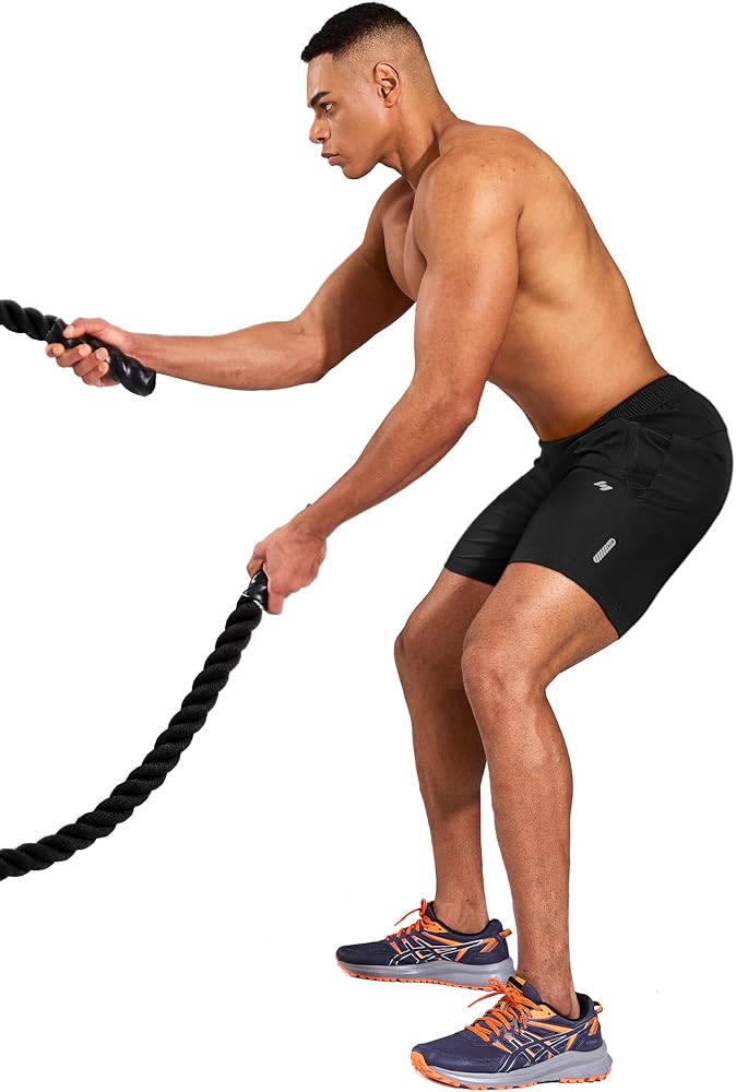 Functional Design: Equipped with two deep, zippered side pockets and one rear zipper pocket, these gym shorts provide ample storage space while ensuring your items stay secure. Reflective design enhance visibility in low-light conditions for added safety
