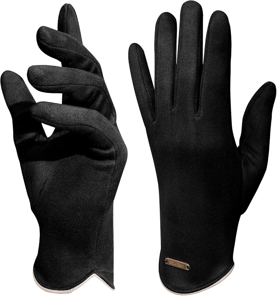 CLASSIC SUEDE FABRIC: The winter fashion gloves have the appearance of being made of soft and delicate suede, full and shiny. This fabric also has a slimming elastic effect, which fits your hands perfectly and modifies the shape of your hands, so goodbye to thick fingers and bloated hands, and full of comfort