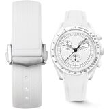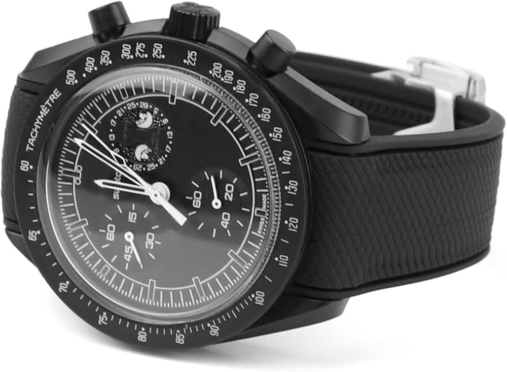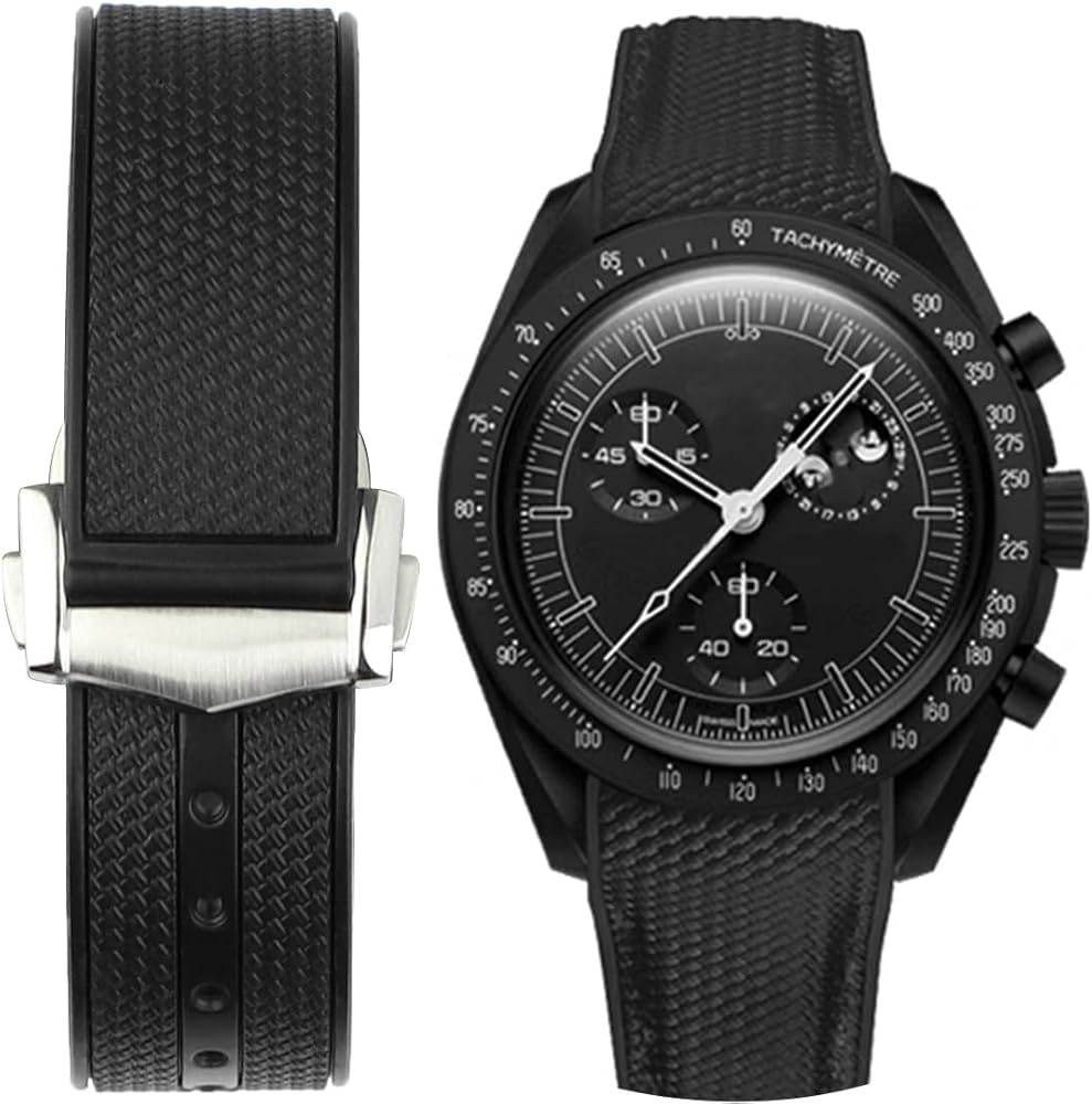 20mm Curved End Rubber Watch Band for Omega X Swatch,Omega Speedmaster moonwatch Folding Buckle Watch Strap Replacement Watchband No Gap Deployment Buckle Men Women Dustproof Washable