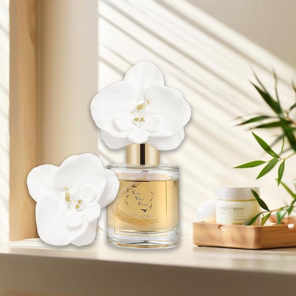 Pretty Valley Home Gypsum Flower Diffuser: Orchid Flower Oil Rose Petals 120Ml / 4.05fl oz Gift Box, Home Reed Diffuser for Bathroom Office Bathroom Living Room Decor