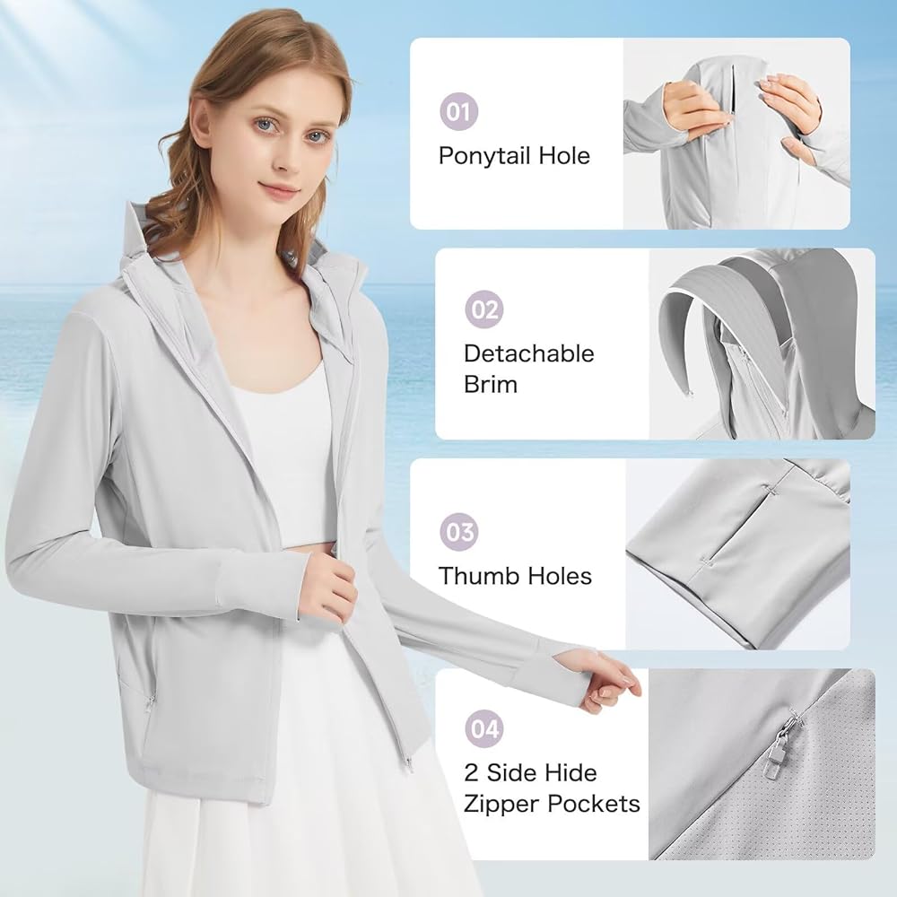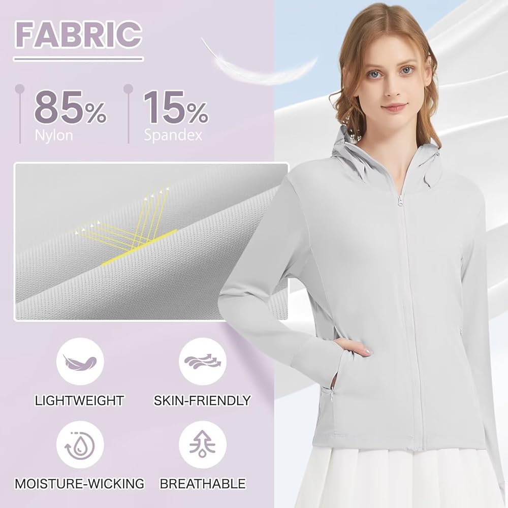 Sun Protection: Hoodies for women with a UPF rating of 50+, it effectively blocks over 99% of harmful UV rays. It protects your skin from sunburn and helps maintain your skin's whiteness, stability, and health.