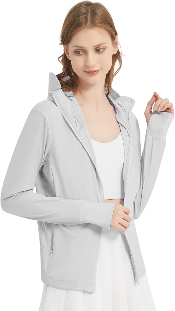 Lightweight & Breathable Fabric: 87% nylon + 13% spandex jackets for women, ultra lightweight, soft sun shirt is cool to the touch which provide superior next-to-skin feel and fresh all the time.