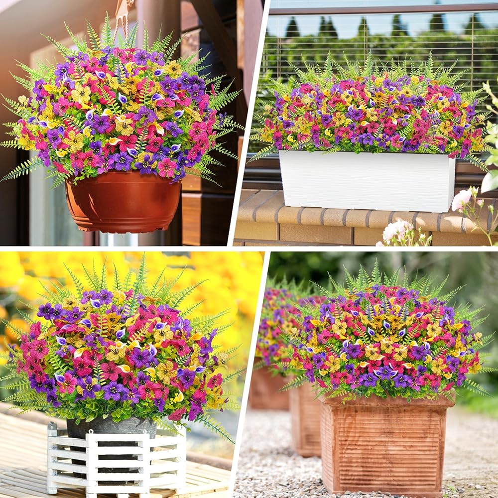 Unique Mix of Outdoor Flowers: Hey, take it from me, our one-of-a-kind collection of outdoor artificial flowers is totally gonna be the buzz of the block this spring. We've handpicked an awesome mix of 14 bundles fake violets, vibrant Peruvian lilies, and chic faux ferns that come in colors so bright and bold, your neighbors won't be able to help but stop dead in their tracks and gawk at the stunning spectacle of your garden.