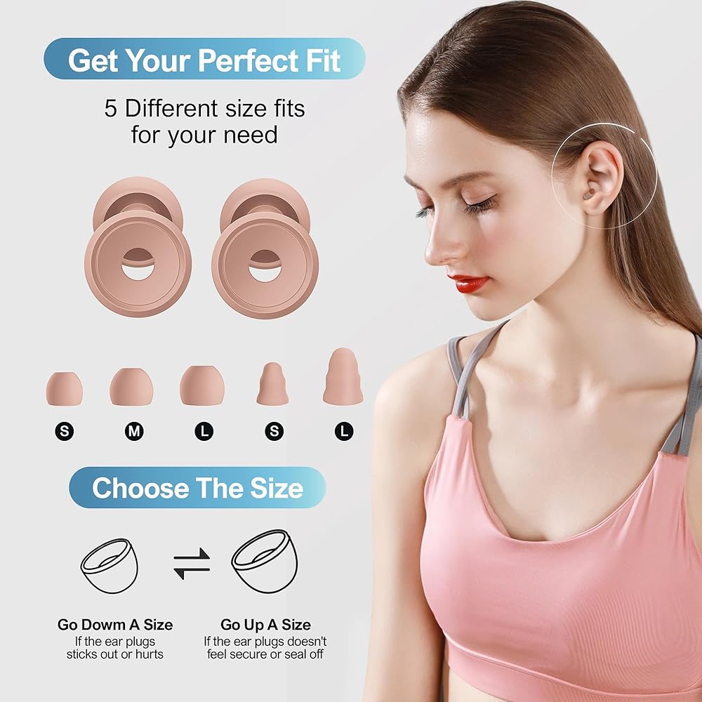 【Designed For Comfort】: The noise reduction earplugs made from skin-friendly flexible silicone material and ergonomically designed shape, the silicone ear plugs comes with 3 different silicone eartips sizes (S/M/L)+2 different memory foam eartips sizes (S/L), so you can always find the perfect fit in your ear. You can use earplugs long periods for day and night with no pain