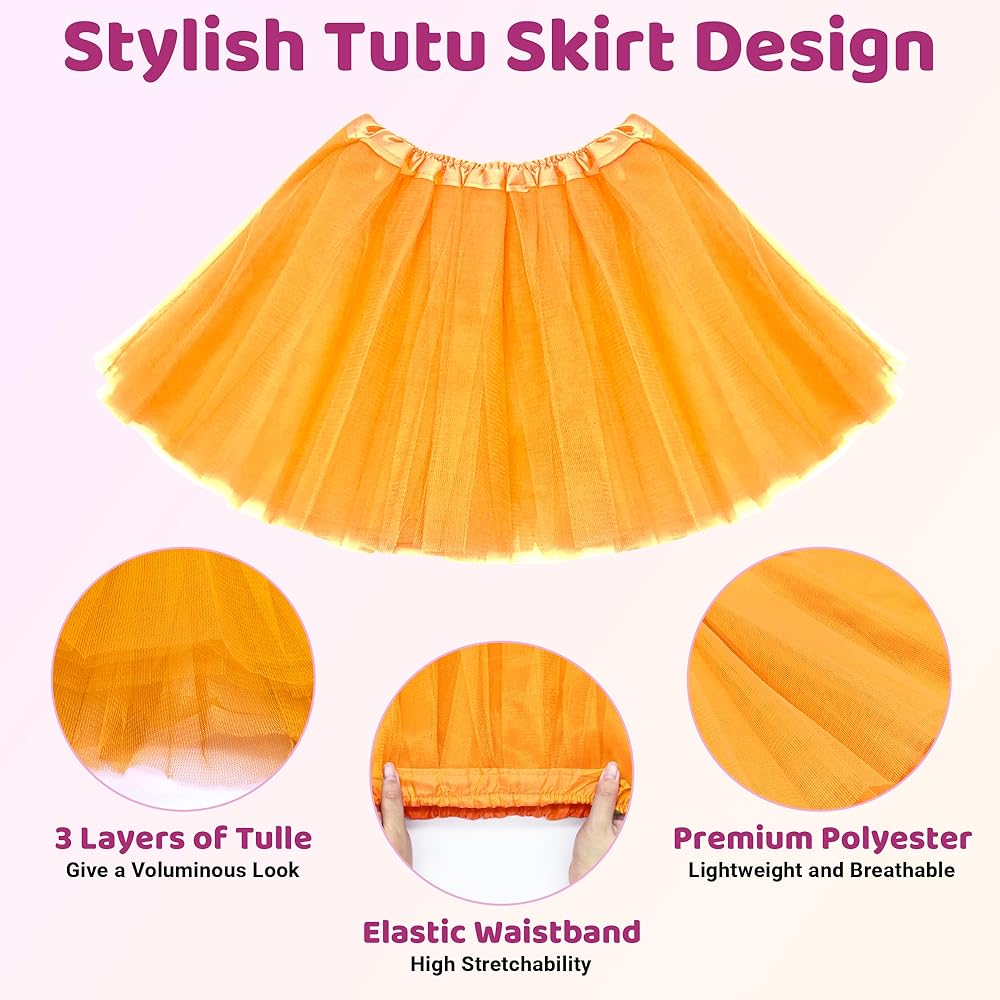 Our toddler tutus are made of high-quality polyester, ensuring they are soft, comfortable, and perfect for active little ones. These tutus are not only a delight to touch but also practical, maintaining their vibrant colors and fresh look even after multiple washes without fading or wrinkling, which enhances their wearability and longevity. Designed with an eye for detail and a heart for fairy tales, our tutu skirts feature three layers of luxurious tulle. This thoughtful design lends the dress a fluffy, infusing it with a princess-like elegance. We offer our tutus in a spectrum of colors, allowing you to choose the perfect hue to complement your child's skin tone or to match a specific theme for a party or event. The Elastic Waist Design of our tutus caters to girls aged 4 to 14, with the ballet skirt measuring a modest 11.8 inches in length. The waistband is made from a highly stretchy elastic that can comfortably extend up to 35.5 inches, ensuring a snug and secure fit without compromising on comfort. This design consideration allows for a wide range of motion, making our tutus ideal for dance recitals, playdates, and all manner of active play. Tulle tutus are a versatile wardrobe staple, perfect for a variety of occasions. They add a whimsical touch to Halloween costumes, enhance the grace of ballet performances, and bring a festive flair to birthday parties. For weddings, our tutus make adorable flower girl dresses, and for daily wear, they offer a touch of magic to ordinary outings. Whether it's a stage show, a holiday gathering, or just a day at the park, our tutus are the ideal accessory for any activity. For those seeking the perfect gift, this tutu skirt is an excellent choice for birthdays or any special occasion. It's not only great for festive celebrations but also for everyday wear, providing a pop of color and a boost of confidence. The ultra-soft fabric is gentle on the skin, making it a delight to wear.